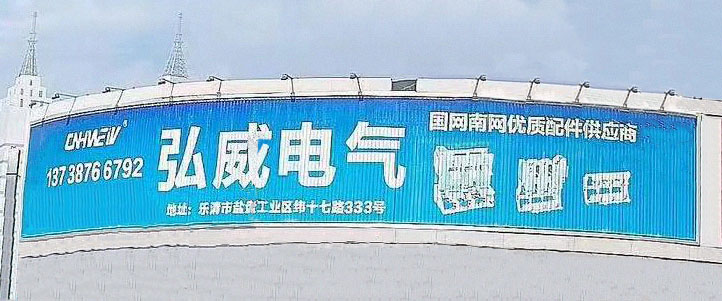 投建的大型户外广告牌正式亮相,不仅彰显了企业的品牌形象,更突出了企业的综合实力。在人来人往的路口,电子广告牌24 小时不间断地循环播放,向过往行人、车辆展示企业的主营产品:10-35KV开关机构,强调了弘威电气作为“国网南网优质配件供应商”的行业定位。